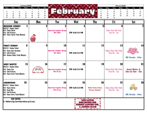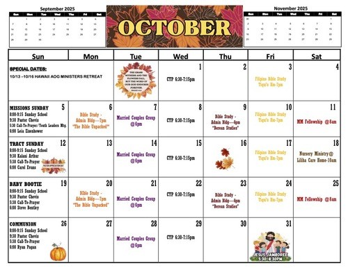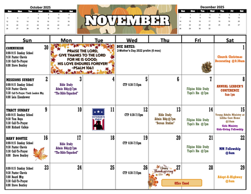 (IF YOU ARE VIEWING THIS FROM YOUR PHONE OR TABLET, PLEASE ZOOM IN TO VIEW OUR CHURCH CALENDAR OR DOWNLOAD OUR CALENDAR BELOW)